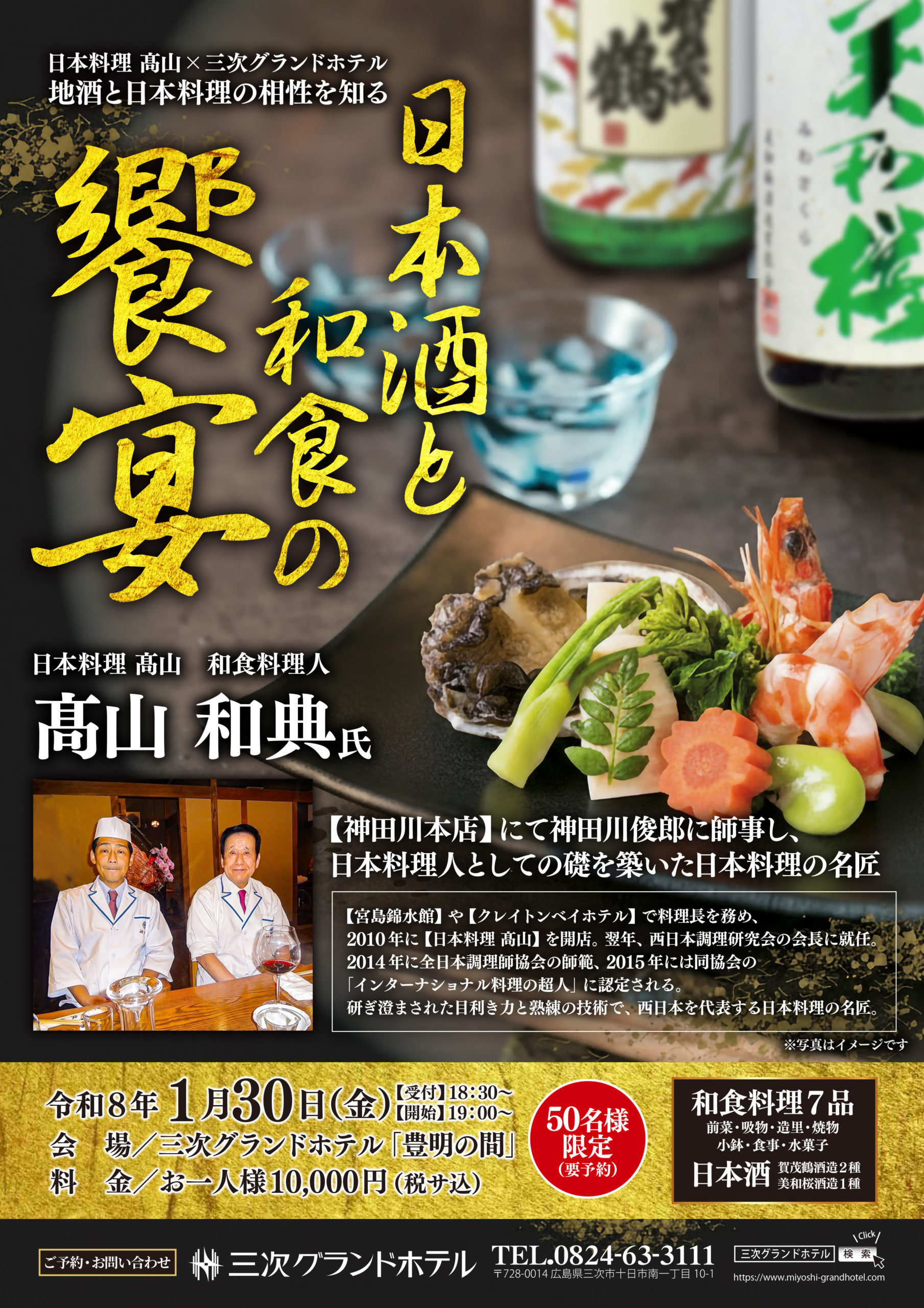 【イベントのご案内】日本酒と和食の饗宴~日本料理 髙山×三次グランドホテル~
